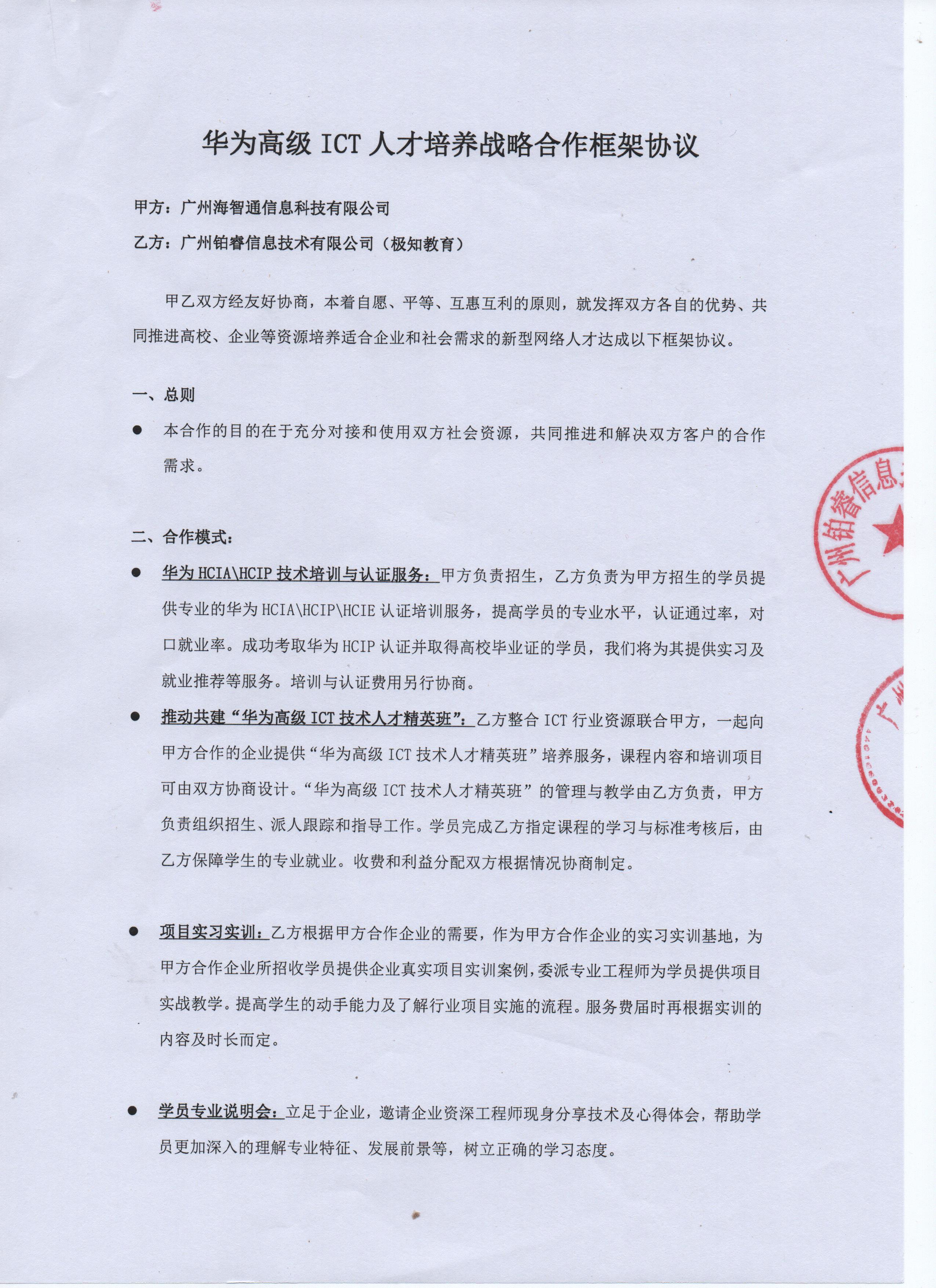 华为培训认证合作协议