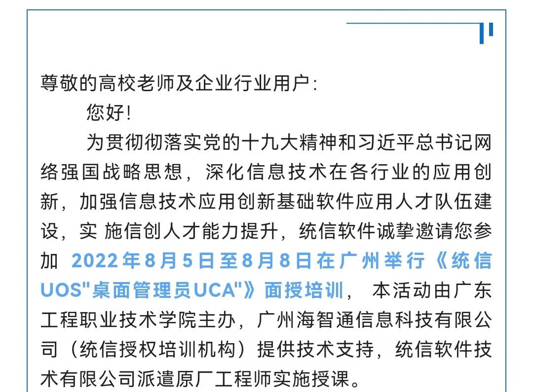 统信UOS“桌面管理员UCA”认证培训邀请函