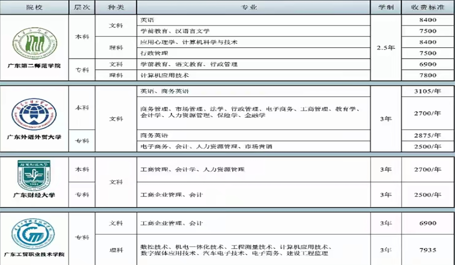 具有国民教育系列专科及以上学历者,可报读本科(专升本),具有普通高中、职业高中、技工学校和中等专业学校学历者,可报读专科: